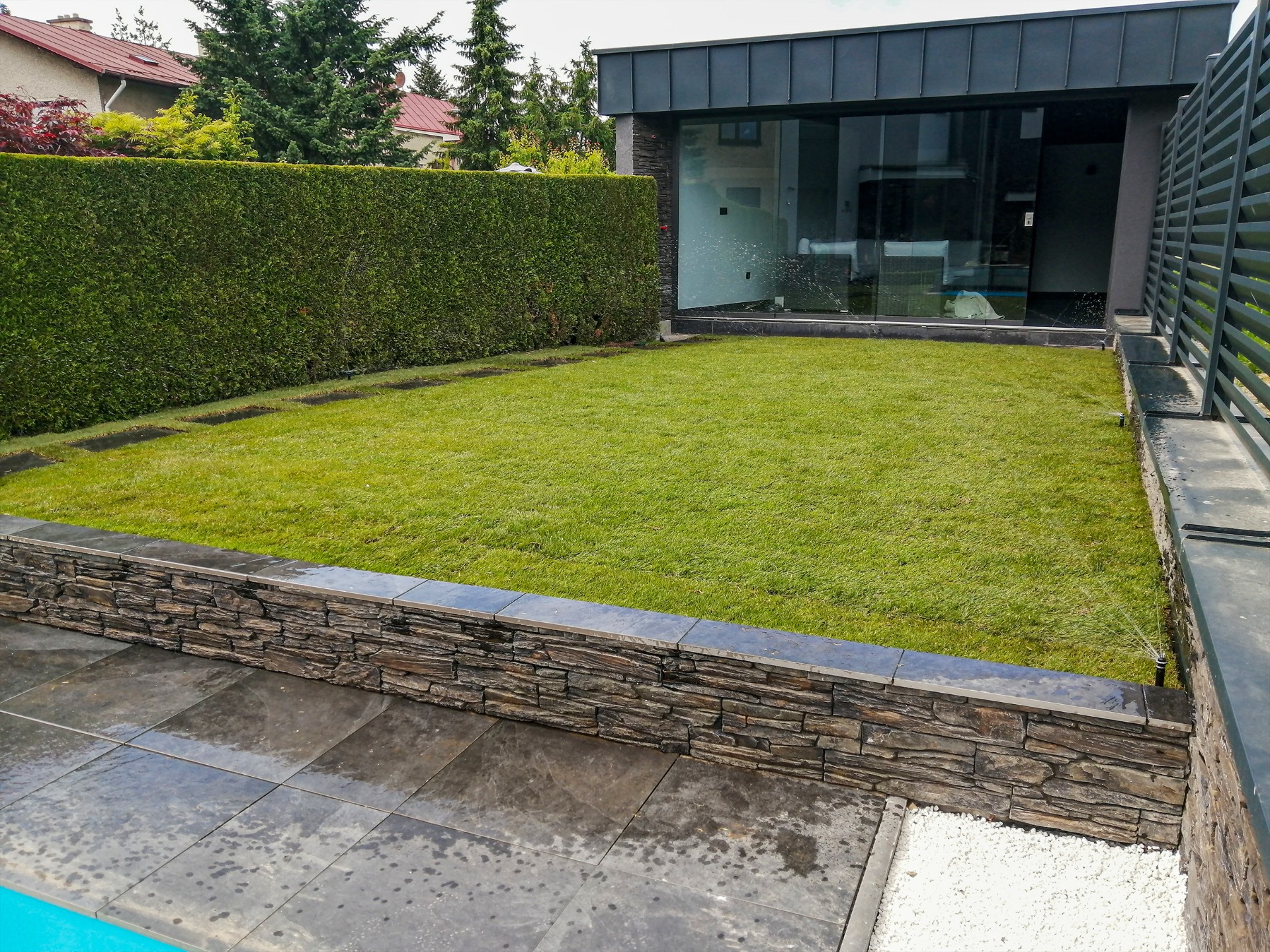 Zahrada v Novém Hrádku prošla kompletní revitalizací včetně úprav terénu a výsadby nové zeleně. Součástí realizace byla také pokládka dlažby před domem, výstavba nového plotu, gabionového schodiště a ohniště. Celý prostor doplňuje prostorná terasa, která se stala dominantním prvkem zahrady.